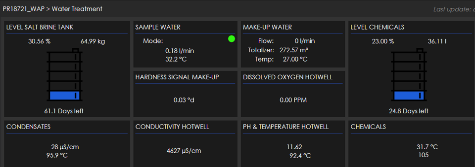 El servicio, llamado CLAYTON WAP, incluye una central de información dedicada, que recopila datos para el servidor cloud. Esto permite el acceso a la información por parte del cliente y por nuestros especialistas, desde nuestro centro de tratamiento de agua.